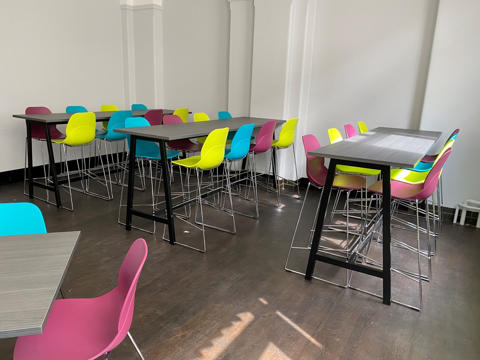 With an angled metal frame the A frame poseur table is both stylish and practical. The laminated top is available in a wide choice of contract laminate colours with a powder coated frame.
